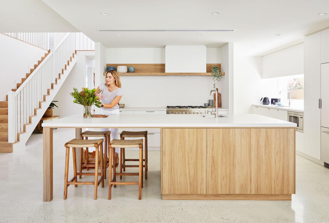 The classic weatherboard cladding and sandy-hued freeform stonework of The Point’s exterior immediately set the coastal style which continues throughout the home. With the adept use of glass creating an abundance of light and inclusion of beautiful natural elements, The Point is a home where you feel as though you’re enjoying a seaside getaway, every day.